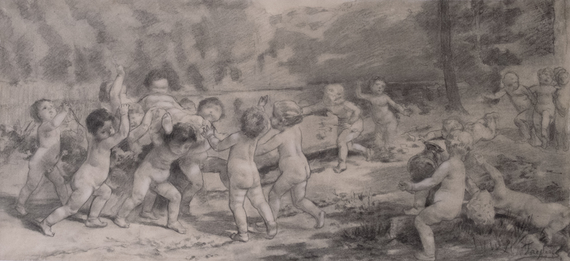 Paysagiste, peintre d’allégories, de sujets religieux et sociaux, Léon Frédéric nait à Gand le 26 août 1856. Il est le fils d'un maître-joaillier qui l’initie très tôt à l’art du dessin et de la peinture. A quinze ans, il est apprenti chez Charle-Albert, peintre-décorateur réputé. L’adolescent est ensuite confié à Jules Van Keirsbilck avec lequel Frédéric éduque son œil et affermit sa main. Il suit les cours du soir à l'Académie royale des Beaux-Arts de Bruxelles pendant 7 ans. Pendant ce temps-là, il fréquente l’atelier de Jean-François Portaels. En 1875, il se cotise avec de jeunes peintres pour louer un atelier où ils peuvent étudier le modèle vivant.